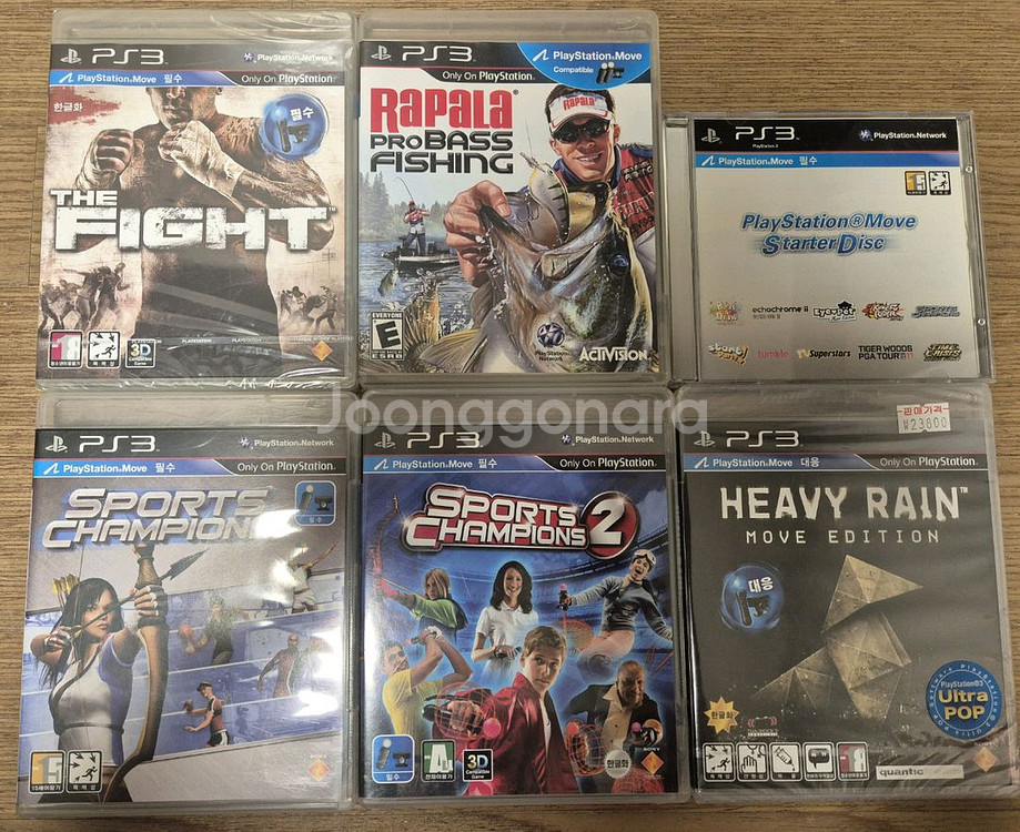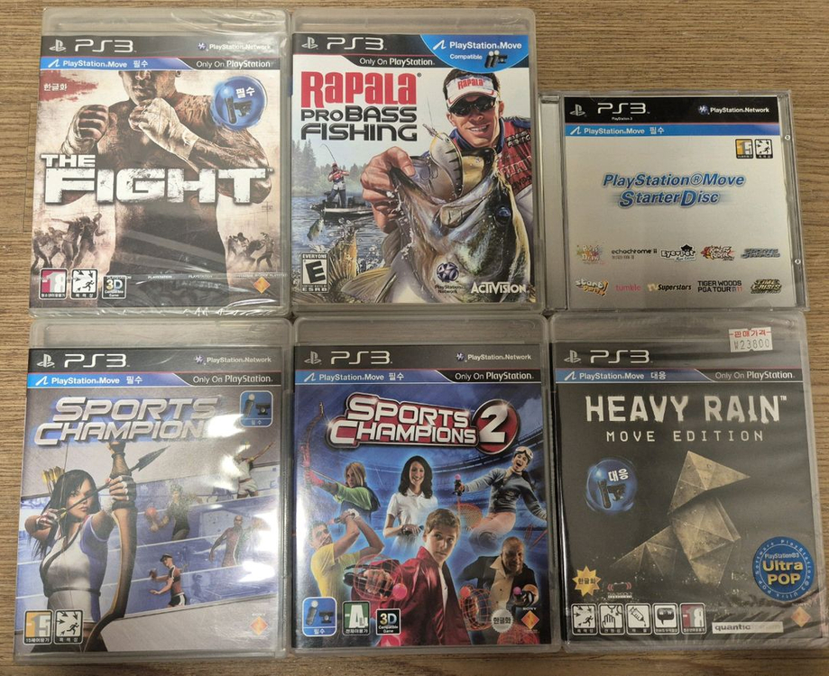 플스3(PS3) 무브게임 6종 판매합니다. 배송비 포함 8만원입니다. 더파이트(미개봉) 라파라프로베스피싱 플스무브스타터디스크 스포츠챔피언 스포츠챔피언2 헤비레인(미개봉) 직거래는 부산 명지국제신도시에서 거래가능합니다.