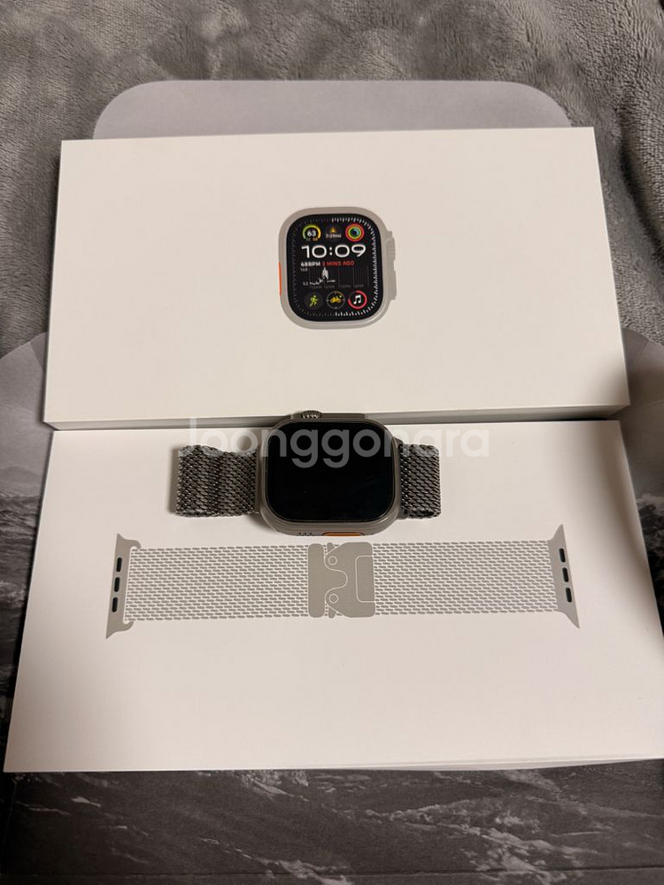 애플워치 울트라2 네츄럴티타늄 밀레니즈루프s사이즈 액정에 강화유리 부착후 사용하여 유리에 기스 같은건 없어요. 사용을하다 보니 생긴 생활 기스들은 존재 합니다만,찍힘은 없습니다. 애케플 적용중이며 27년3월20일 까지 입니다. 베터리 성능 상태 100퍼 전주 효자5동 직거래 가능. 그 외 지역은 택배 착불로 발송 해드립니다.