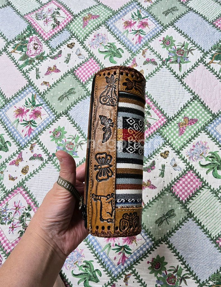 사진 자세히 올렸으니 넘기며 보세요 길이 21cm 옆 원지름 6.5cm 터키산 수공예 가죽과 패브릭 필통입니다. 가죽 부분에 섬세한 조각이 돋보며 독특한 디자인이라 소장 가치 있습니다. 사진 자세히 올렸으니 넘기며 보세요 길이 21cm 옆 원지름 6.5cm 터키산 원통형 가죽 필통 두껍고 딴딴합니다. 필기도구 많이 들어갑니다. 집에서만 필기도구 넣는 용도로 사용해서 상태 별 흠없이 아주 좋습니다. 중앙아시아와 터키만의 느낌 있는 아주 이국적 필통입니다. 구하기 어려운 원통형 필통입니다 환불반품은 안 됩니다.