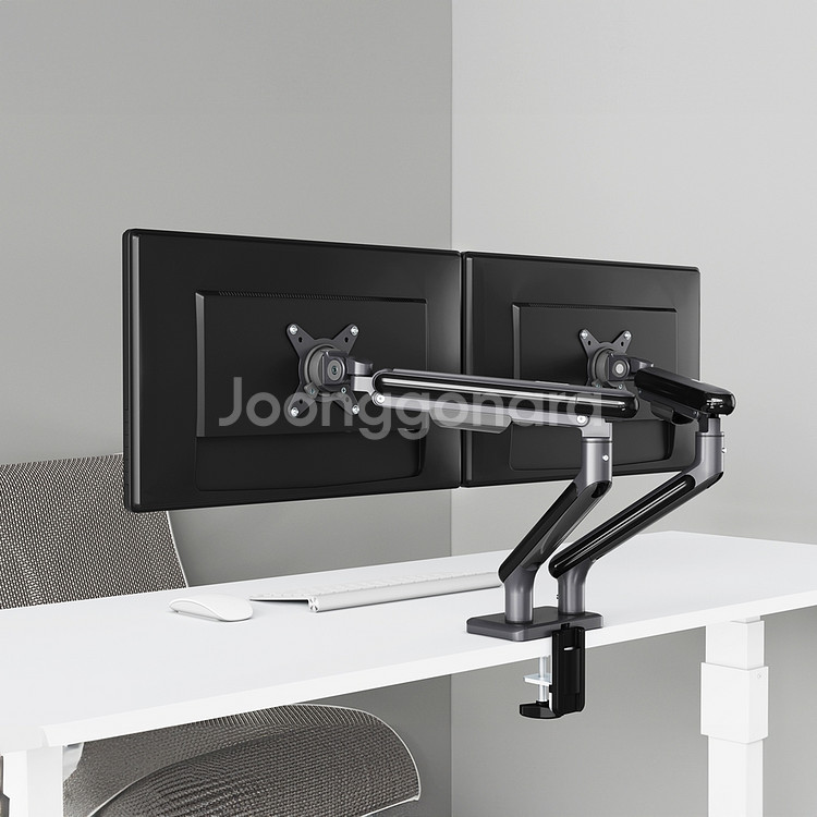 주연테크 캐리암 듀얼 블랙 가정용 사무용 모니터암 거치대 360도 각도조절 클램프 홀
