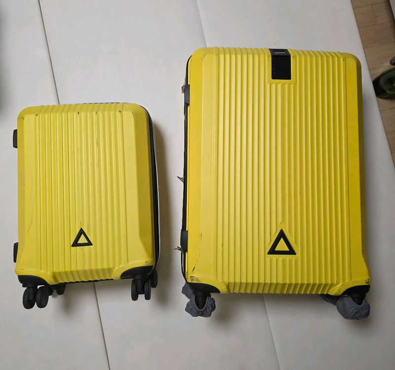 플리거 여행용, 캠핑용 캐리어 옐로우 특대형, 기내용 캐리어. 최범석 디자이너의 플리거 캐리어입니다. 무지 화사한 옐로우 색상이고 엄청 튼튼해서 캠핑용으로도 좋아요. 밝은 색이라 때탐 조금씩 있지만 몇번 안써서 상태 좋아요. 예민하신 분은 새제품으로 구입해주세요. 상세 상태는 사진으로 봐주시고 상세 사이즈는 가장 마지막 사진 봐주세요. - 특대형 28인치 : 판매완료 - 기내형 20인치