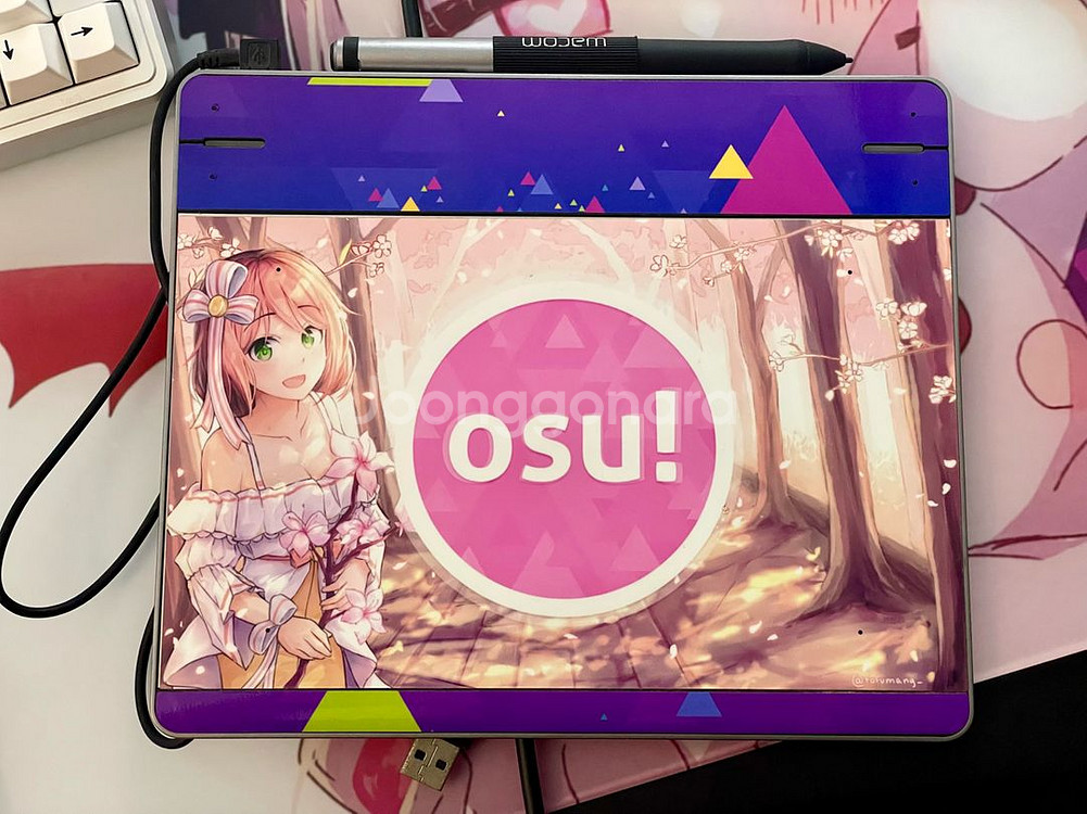 펜 태블릿 판매해요! 화면에 예쁜 일러스트가 있어서 사용하기 좋고, 전체적으로 상태 양호합니다. 디지털 드로잉이나 디자인 작업용으로 활용하세요. osu용으로 사용했었던 타블렛 판매합니다 osu하실분들은 바로 사용하시고 그림 그리시는분들은 저거 일러스트 필름 제거하고 사용하시는게 좋을꺼에요! 싼맛으로 가지고놀기 좋아요