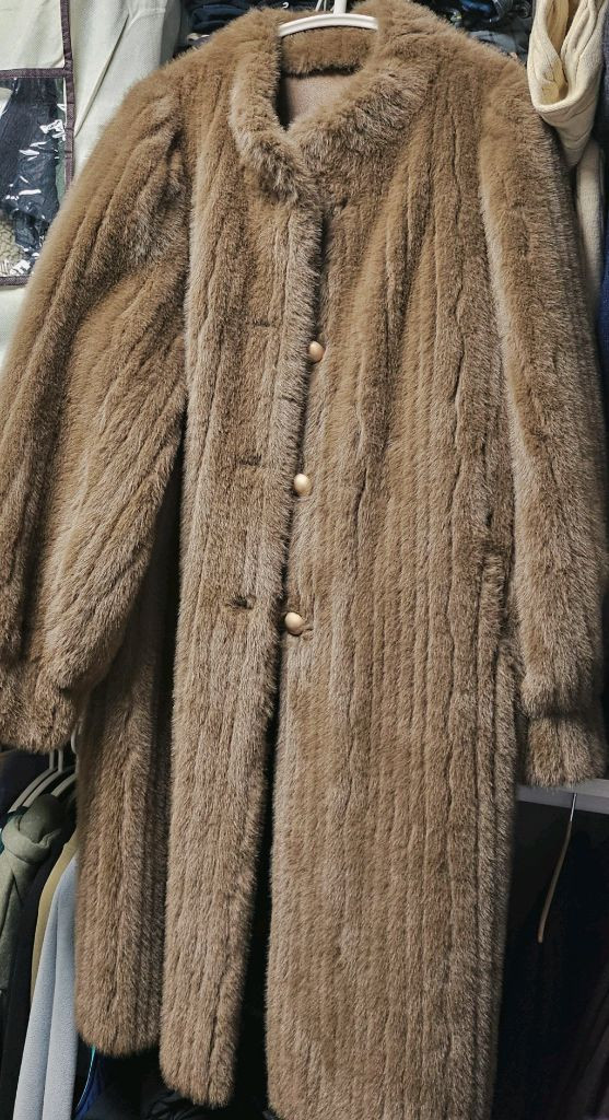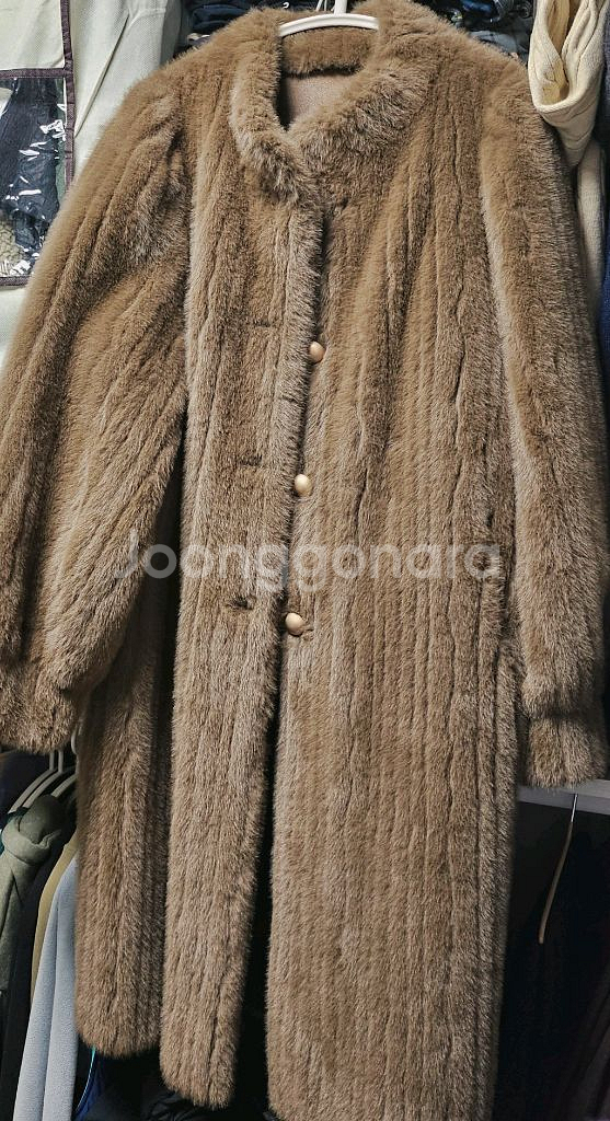 따뜻하고 고급스러운 브라운 컬러의 페이크밍크 퍼 롱코트입니다 부드러운 촉감과 풍성한 퍼가 특징이에요 롱 기장으로 겨울철 따뜻하게 착용하기 좋습니다 소매끝은 귀여운퍼프식~~ 미착용~ 단추 여밈으로 깔끔하게 연출할 수 있습니다 사이즈는 프리사이즈로 55~77