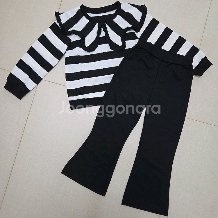 (6Y) 물결스타일의 빅카라가 뒤쪽까지 연결되있는 니트같은 재질이고 바지는 밑단쪽 옆트임이 포인트되어 세트로 나온 디자인이지만 단품으로 따로 코디해도 예뻐요 ☺️💚 실착도안한 새상품이라 지퍼백에 그대로 담아드리겠습니다🙏