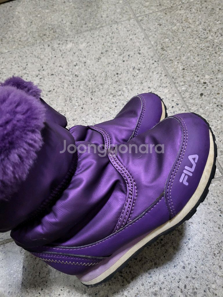 FILA 175 사이즈 보라색 털부츠예요 발목에 배터리 풍성하고 옆지퍼가 없는 스타일이라서 발사이즈 160사즈 정도 되는 아이가 가져가면 올해~ 내년까지 눈 놀이할때 잘 신을듯 해요^^ 털 부츠 특성상 눈썰매장 갈 때 정도만 신었다 보니 굽 닳은거나 하자 등의 이상 없이 상태 좋으나 밖에서 신는 신발인 만큼 사용감 고려해서 매우 저렴히 드려요~~ 개인 거래 특성상 교환, 환불, 반품이 불가하니 설명 읽어보시고 궁금한 점은 자세히 문의주세요~ 일반 택배 +4000원 또는 GS, CU 반값 택배 +2000원 추가시 발송 가능해요~