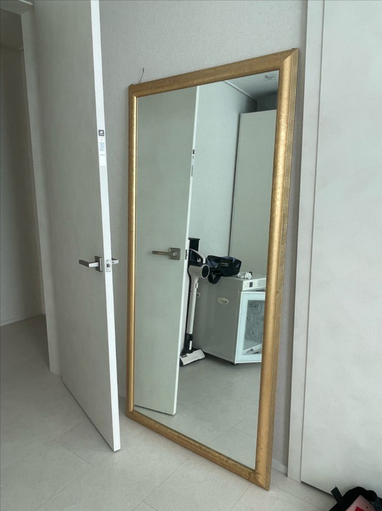 골드 프레임의 대형 전신거울이에요. 거실이나 침실 어디든 걸치기 좋고, 상태도 깔끔한 편입니다. 큰 공간을 넓어 보이게 해주는 실용적인 아이템이에요. 아트유에서 구매한 대형 거울 입니다 주문제작으로 40만원정도 주고 구매 햇어요 실제로 보시면 정말 고급스럽고 예쁜데 짐정리 하면서 내놓습니다 굴곡이나 왜곡없는 거울이고 우드에 골드처리 되어있구요 거울 앞면애는 특수처리 되어있어 잘 깨지지 않습니다 뒤에 고리 다 있어서 안전하게 사용하실 수 있어요 아트유 사이트 들어가보심 거울 가격 나와있습니다~