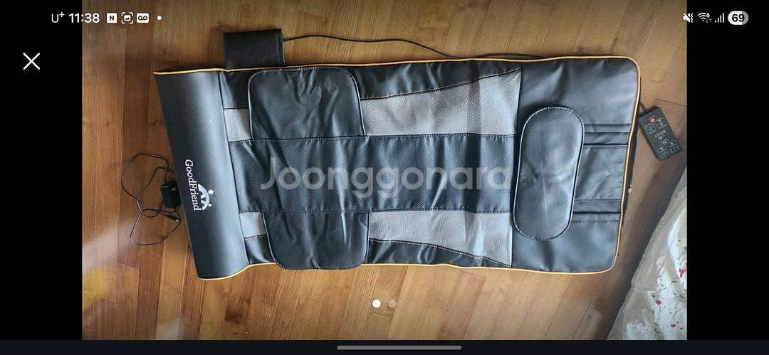 전기 온열 마사지 매트 판매해요. 정상 작동하며 집에서 편리하게 마사지 받으실 수 있어요. 리모컨과 전원 어댑터 모두 포함되어 있습니다.