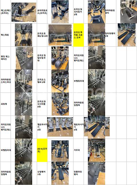 프리코 머신, 유산소기구들 전부 판매합니다. 사진에 리스트들 전부 올려두었고, 전부 세트로 구매하는 조건으로 판매하고 싶습니다. 연락 부탁드리겠습니다. 010-4336-8117