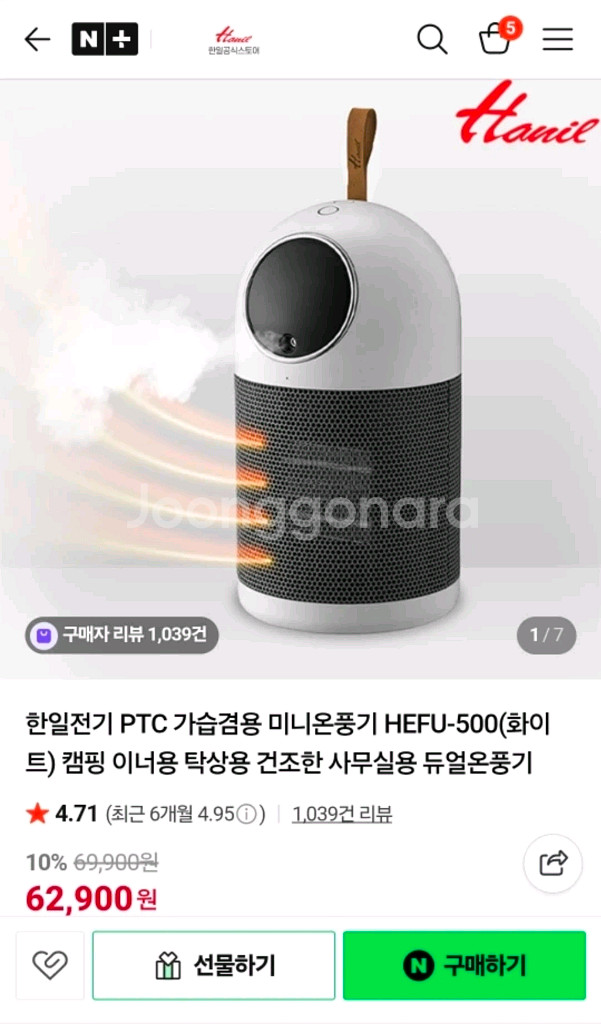 한일전기 HEFU-500 가습 겸용 미니 온풍기입니다 색상은 화이트입니다 난방면적은 2~6m²입니다 - 물탱크 용량은 200ml입니다 쾌적한 가습 기능으로 건조한 겨울철에도 촉촉하게 사용할 수 있습니다 사무실이나 침실 등 개인 공간에 놓고 사용하기 좋습니다 캠핑할때 좋다고하네요.