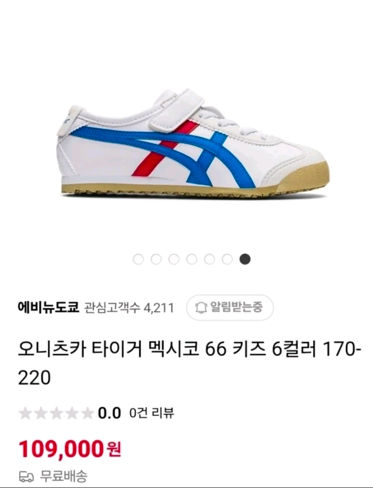 오니츠카 타이거 멕시코 66 키즈 신발이에요. 도쿄에서 해외배송으로 받았는데 사이즈 미스로...판매합니다!!!!디자인 너무 이뻐요~ 실착용은 1~2번정도 한것 같아요😭😭😭😭😭😭 사이즈는 170mm +신발 박스 있습니다.