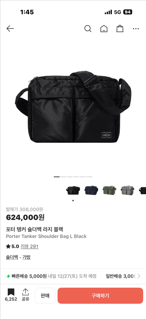 포터 탱커 숄더백 라지입니다 리셀가 높습니다.. 적은횟수착용 깨끗합니다