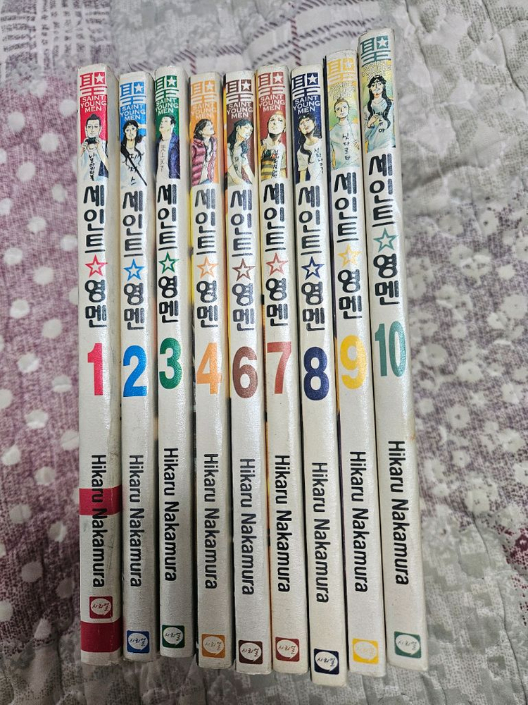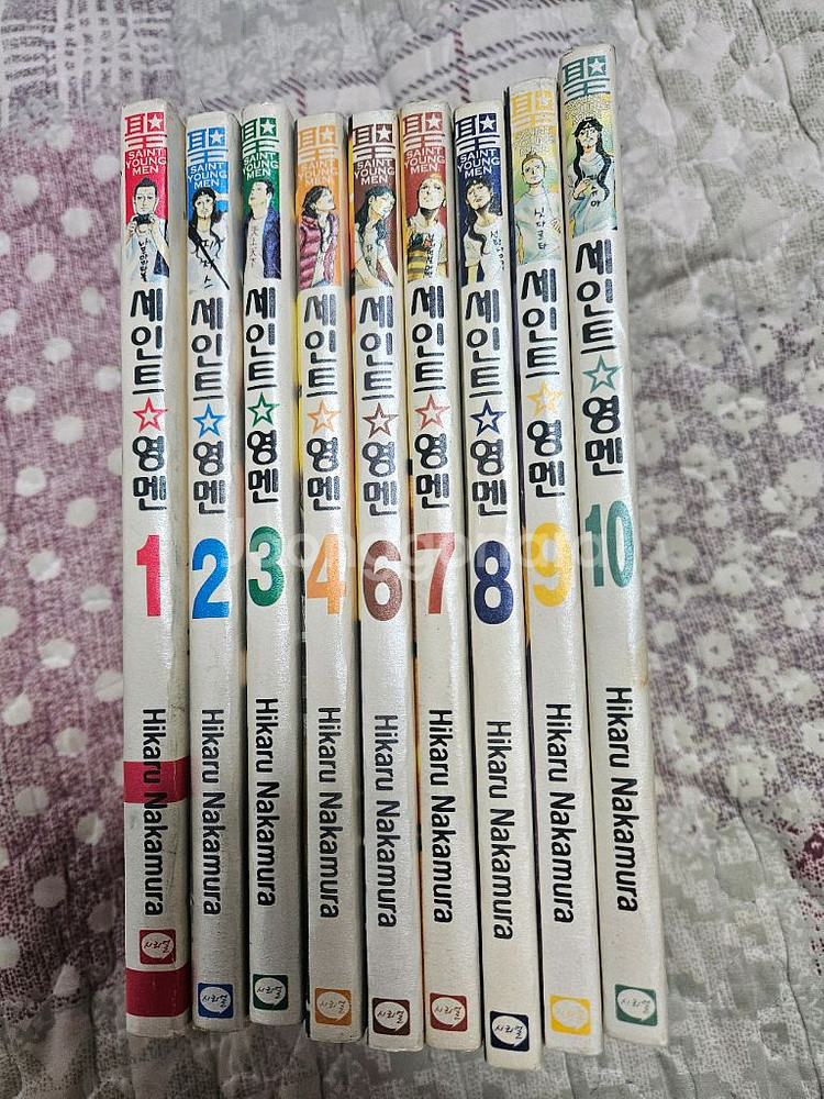 책 내부는 문제가 없으나 겉 표지등에는 찍힘, 얼룩등이 심하지는 않지만 존재합니다. 감안하시고 구매하실분만 연락주세요. 세인트영맨 1-10권 5권은 없으므로 아홉권입니다.