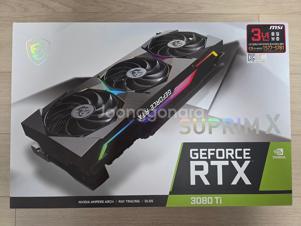 MSI 3080 TI SUPRIM X 팝니다 21년 8월 구매 (영수증 첨부가능) 오버X , 비흡연 사진참고하시기바랍니다 풀박스 (본체 외 미사용) 그래픽카드 변경하여 판매합니다 60만 (네고X) 직거래 파주한양수자인리버팰리스 정문 택배시 편의점택배(CJ대한통운) , 안전거래X 공1공 22육공 삼육88 문자나 채팅주세요