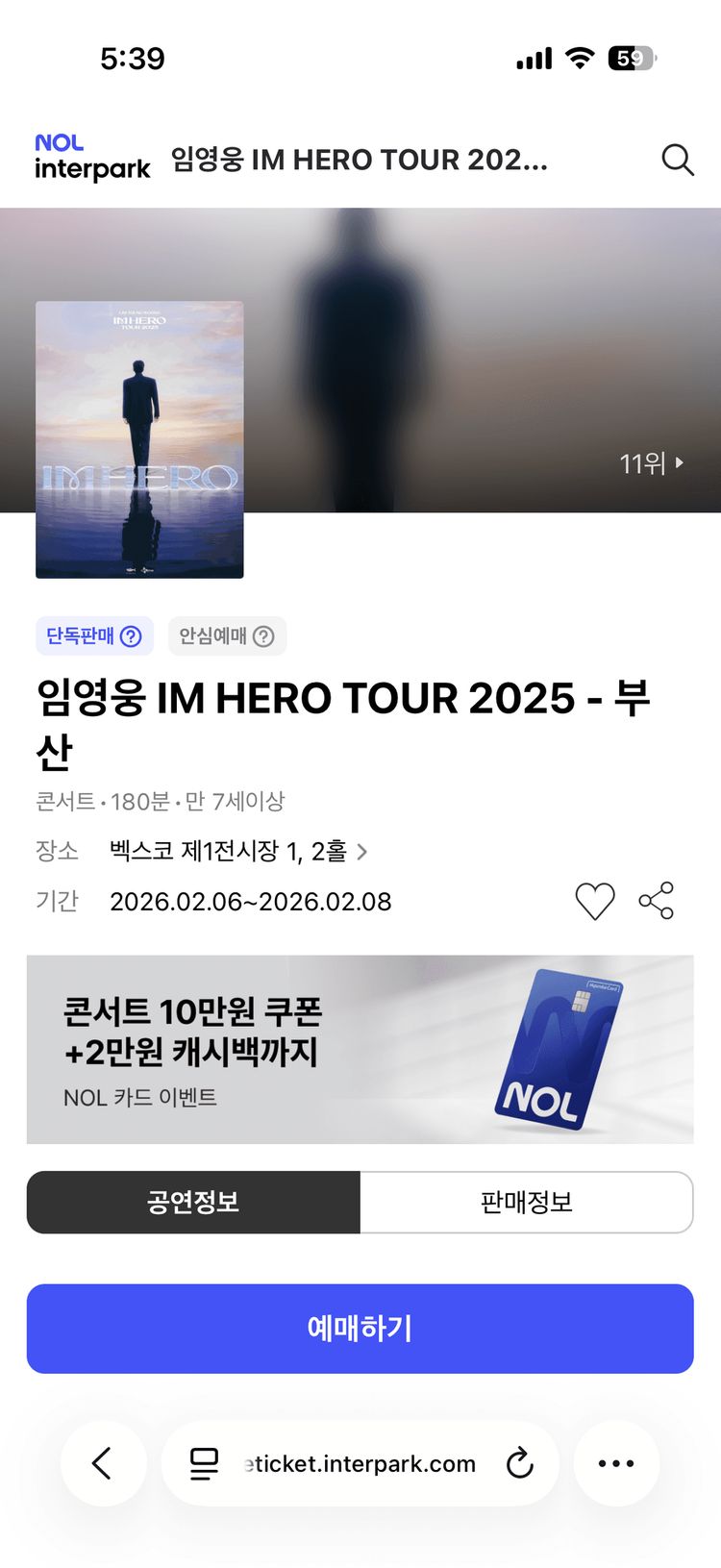 임영웅 콘서트 부산벡스코 티켓 양도합니다. 2월 8일 17시 25구역 13열 --번 수수료 떼고 정가 154,000원 올립니다 관심 있으시면 연락주세요! 네고 가능합니다