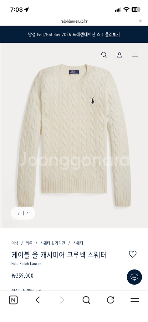 작년에 구매해두고 텍도 안떼고 보관해둔 폴로 랄프로렌 캐시미어 니트예요~ 크림 아이보리 컬러라서 너무 이뻐요 한칫수 업해서 새로구매해서 판매해요 사이즈 조언안해요~ 스테디셀러고 현재매장에서 36만원에 판매해요 정품인증 QR코드로 가능해요! 혹여,제가 기재한거외(사진첨부포함) 미처못본 부분이 있을수 있어요 예민하신 분들은 문의 말아주세요~ 사이즈미스, 단순변심 그로인한 반품 환불 안되니 이점에 동의하시는 분들만 문의 구매 부탁드립니다 네고 안해요❌ 개인간 중고거래임으로 반품이나 환불 안되니 이점 숙지하셔서 신중한 구매 부탁드립니다 :) 가품팔지 않아요 제 판매내역 보시고 매너 문의주세요! 택배거래만 합니다 아이들 학교때문에 동탄 오가느라 시간맞추기 힘들어 직거래 힘들어요 택배비 포함 금액이고 충분히 고민하시고,구매 하실분만 챗 부탁드려요~ 안심결제 안합니다 불안하시거나 걱정되시는 분들은 구매나 문의 말아주세요🙏