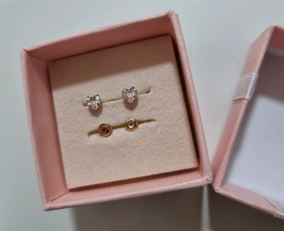 14k 귀걸이 원터치를 선호해서 구입하고 몆번 착용후 보석함에 보관만 했어요.상태 좋아요. 뒷부분 마개 사이즈가 살짝 다르네요. 정리하면서 바뀐듯해요. 매장에서 구입이고 상태 좋아요. 6만원에 판매해요.