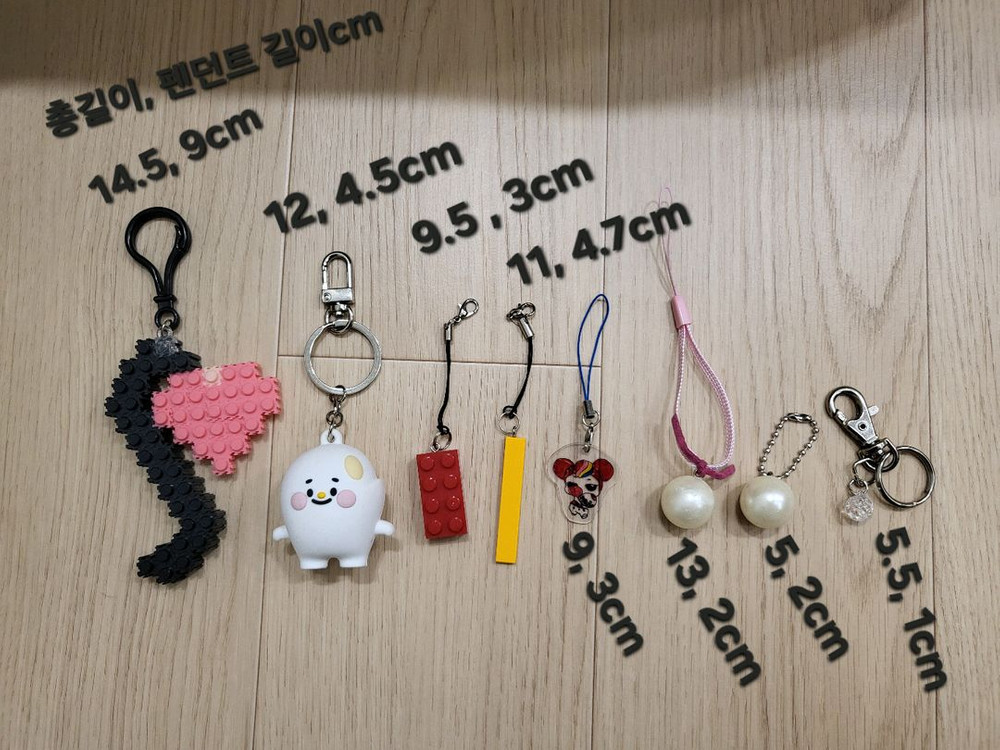 ● 빠른 판매를 위해 새해 할인행사 가격으로 조정했습니다.^^ 물건 저렴하게 구매하시고 새해 복 많이 받으세요~^^ 개당 천원에 판매합니다. 일괄 구매 시에는 할인해서 총 5000원에 판매합니다. 다양한 디자인의 키링 새상품입니다. 길이는 사진에 기재되어 있으니 참고 부탁드립니다. 진주 모양은 원래 자체에 코팅이 벗겨진 곳이 있었는데 키링 만들 때 발견했을 정도로 저는 그냥 봤을 때는 신경쓰이지 않았어요. ■가격제안 받지 않아요*** ■매일 비울 물건을 찾아보고 깨끗한 상품들만 올리니까 판매글을 올리는 즉시 팔리는 경우가 많아요. 물건이 먼저 팔리기 전에 바로 연락주세요~^0^ ■직거래는 오셔서 물건을 꼼꼼히 보신 뒤에 구매 결정하시면 되세요. ■택배 거래는 배송비 4,000원, 반값택배는 2,700원입니다. ■구매 후 교환, 환불은 어려운 점 이해 부탁드려요. ■24시간 언제든 문의 주시면 확인하는 대로 답장 드릴게요.^^ #키링 #레고키링 #블럭키링 #진주키링