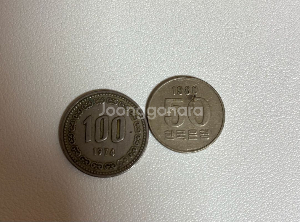 1974년 발행된 100원 동전, 1980년 발행 50원 입니다 가격 제시해주세요