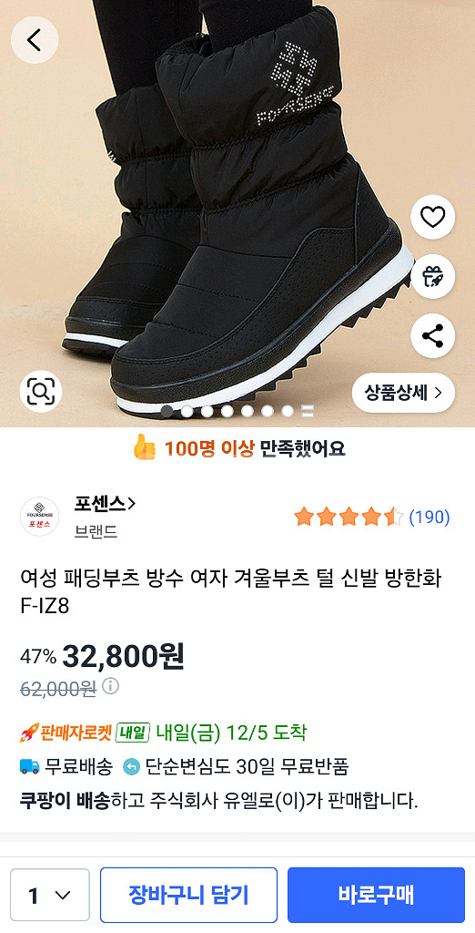 여성 패딩부츠 방한화 F-IZ8 230사이즈