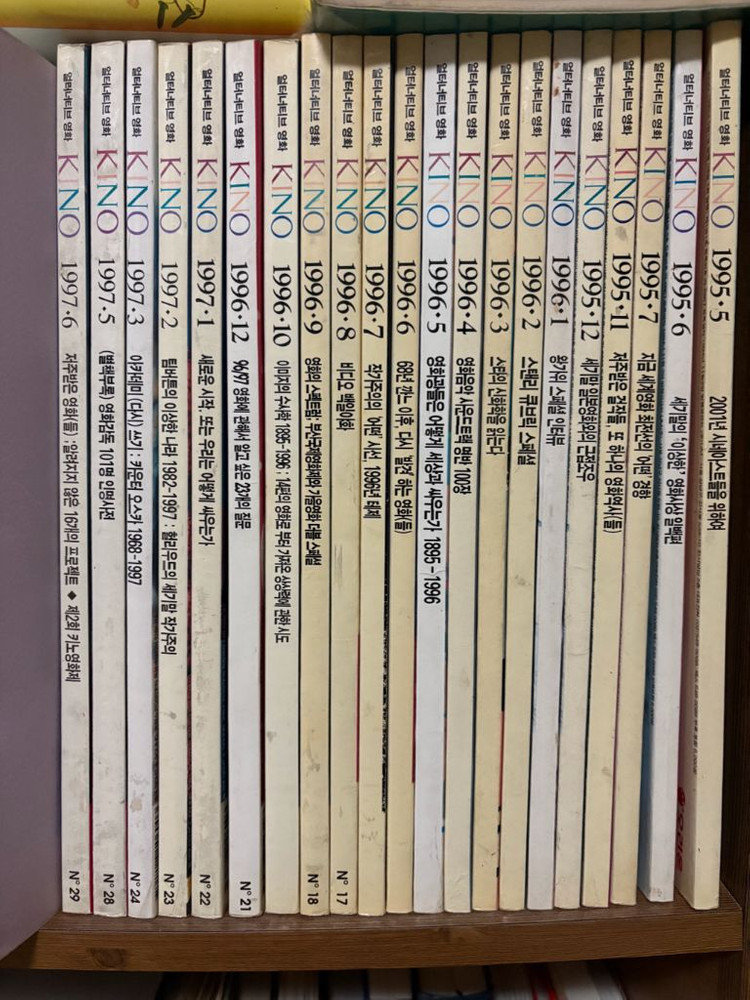 영화잡지 키노 21권과 부록들입니다. 1995 5월창간호, 6,7,11,12 1996년은 11월호 빼고 다 있습니다. 1997 1,2,3,5,6 1995 창간호 다이어리 부록이랑, 1997 영화감독인명사전 부록도 있습니다.