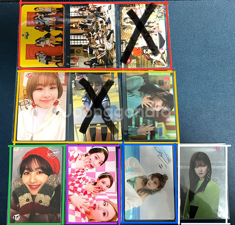 트와이스 공방포카 및 쇼케이스 포카 판매합니다. -낰낰/시그널 쇼케이스 포카(빨간색표시) : 각 2만 -시그널 공방포카(노란색) 채영 6만 모모 2(*뒷면 스크래치) -하트셰이커 공방포카(초록색) 지효 7만 -왓이즈럽 공방포카(보라색) 나둡챙 3만 -댄스더나잇어웨이(파란색) 정연 5만 -팬시 공방포카(화이트) 정연 4만(*투명포카 재질 특성상 잔기스) 전체 일괄구매 : 29만 **오래된 포카인 관계로 보관 및 현장 수령 당시 포카 뒷면 스크래치 혹은 잔기스 등 있을 수 있습니다. 예민하지 않으신 분이 구매하시길 권장합니다. **전체 일괄구매 시 배송비 판매자 부담 ***구매하실 분만 연락주세요.