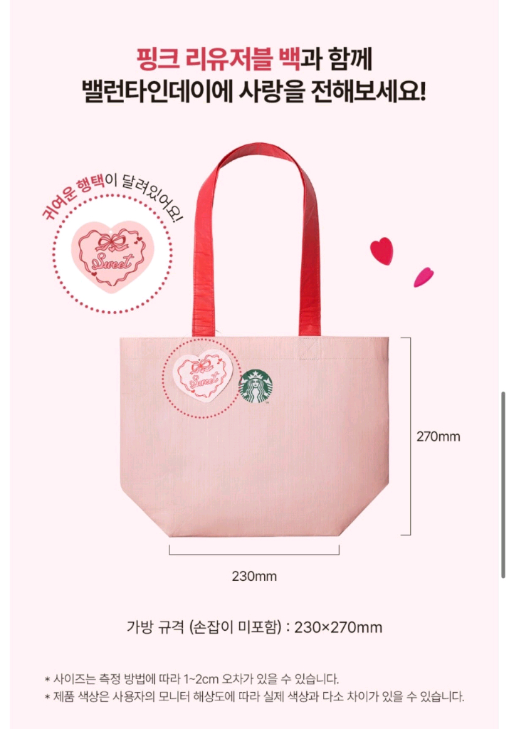 스타벅스 핑크 리유저블 백 새상품 미사용 직거래 가능 택배 4,000원 반택 2,500원 네고 불가능