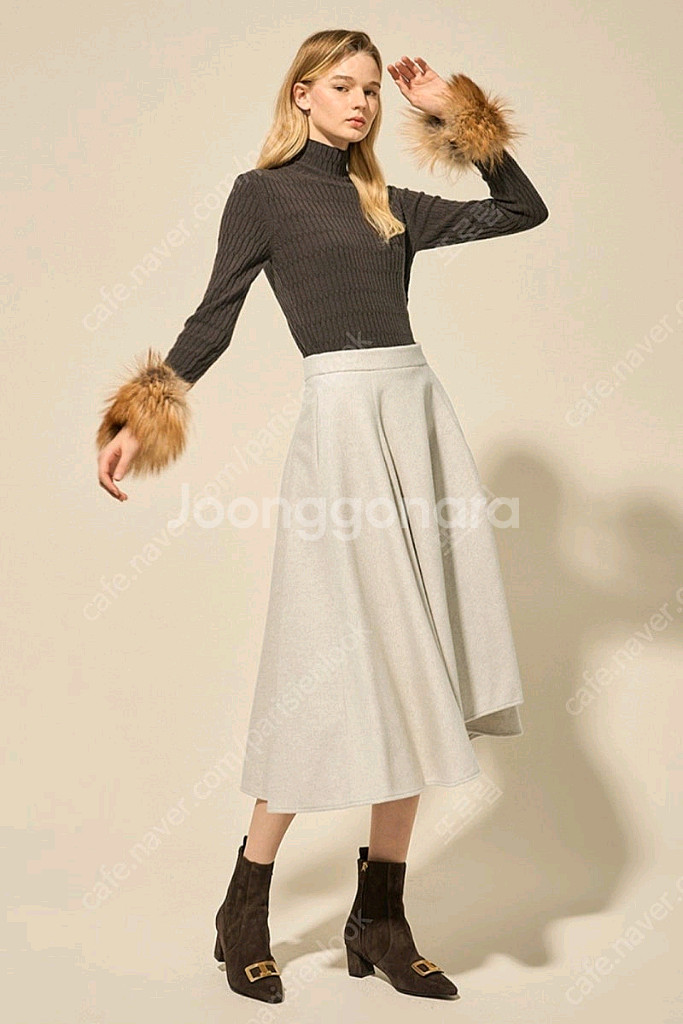 랑방 울 플레어 스커트입니다. 두번 입고 보괸만 해서 상태 아주 좋아요. 55사이즈 오트밀 컬러 2022년 백화점 구입
