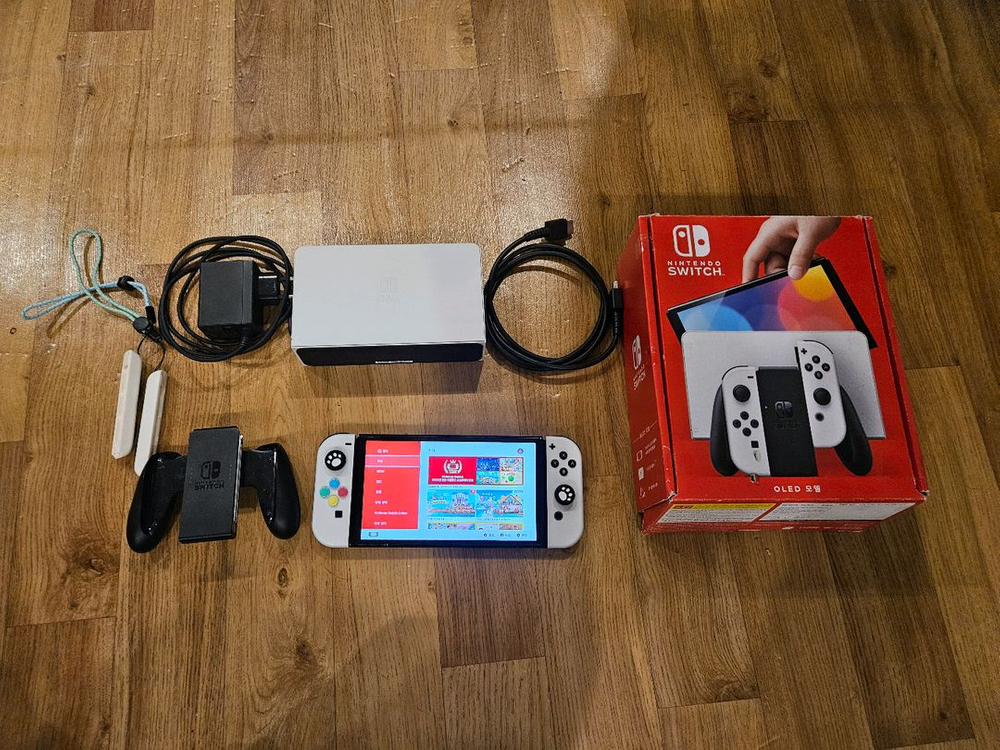 닌텐도 스위치 OLED 화이트 컬러 풀박스 팝니다. 구매 후 거의 사용하지 않아 상태 좋습니다. 상태사진참조. 사진에 보이는 구성품 전부 드립니다. 문의 없으시면 바로 안전결제해주시면 됩니다!