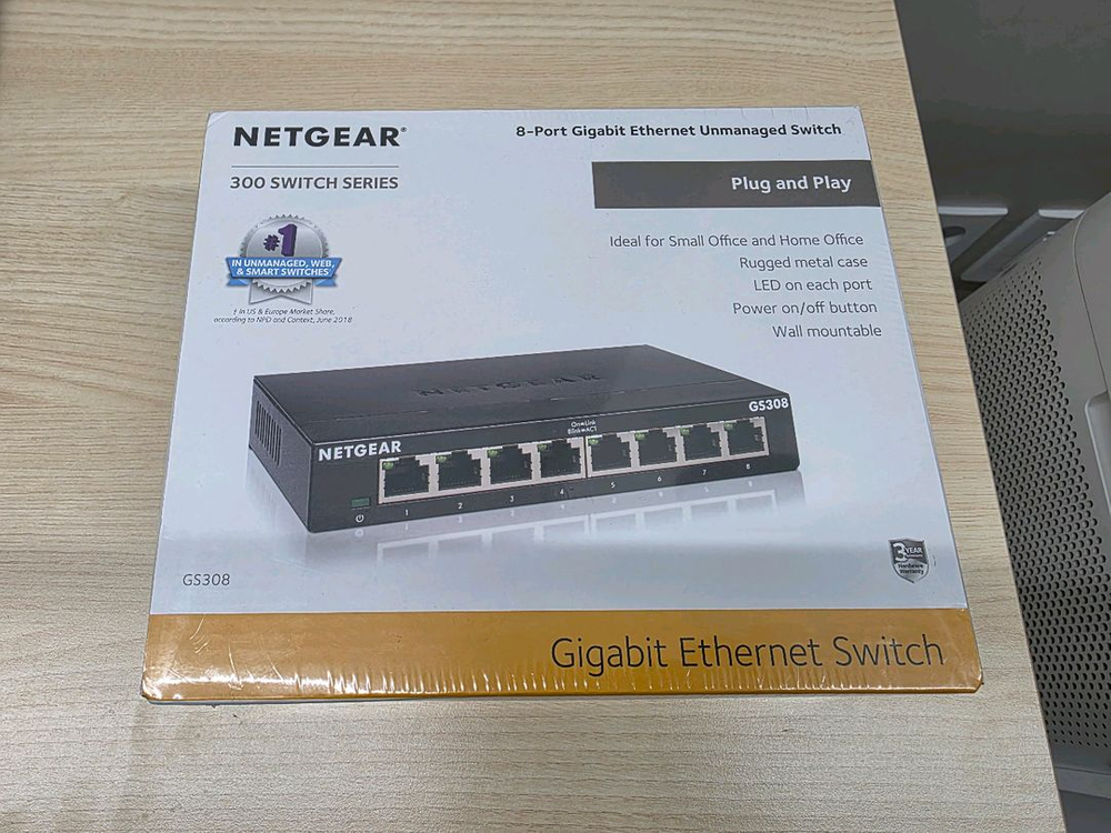 넷기어 GS308 8포트 스위칭 허브 새상품 판매합니다. 거래는 서울 금천구 가산동 사무실로 오시면 되십니다. 공일공 칠구삼삼 팔삼삼삼 으로 연락 주십시요!