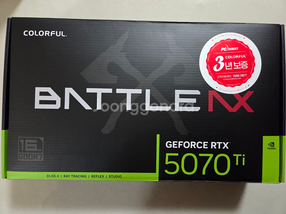COLORFUL 지포스 RTX 5070 Ti 토마호크 EX D7 16GB 단순 개봉 및 장착 후 컴퓨터 케이스에 비해 너무 커 탈착 후 보관하였습니다. 26년 1월 14일에 구매하였으며 영수증 가지고 있습니다. 박스 구성품 다 있습니다.