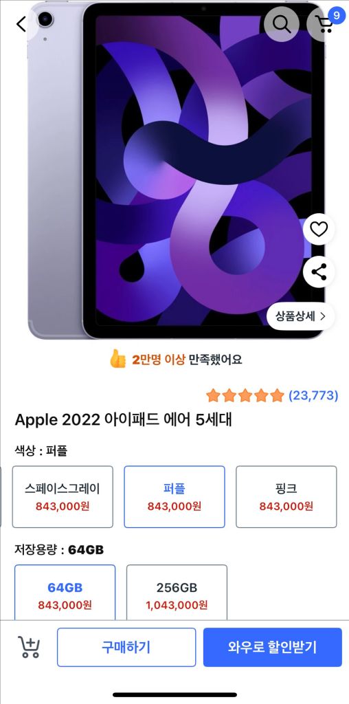 사용기간은 1달정도 되는거같고 케이스 끼고 써서 거의 새제품이라고 보시면 되고요 구성품 다 있습니다 케이스 원하시면 같이 드릴게요 작동 매우 잘되고 흠집 하나 없습니다 필름 때시면 사용감도 없습니다 종이질감 필름이고 필름 떼고 보내달라고 요청해주시면 떼서 드릴게요 모델명: 아이패드 에어 5세대 WiFi+Cellular 64GB 퍼플 데이터도 같이 되는 모델이라 와이파이 64기가랑 10만원 차이 정도 납니다 제가 올려놓은 에어팟 상품하고 같이 구입하시게 되면은 100만원에 일괄 판매 하겠습니다 에어팟도 거의 사용감 없이 깨끗합니다 갤럭시로 갈아타게 되어서 판매합니다