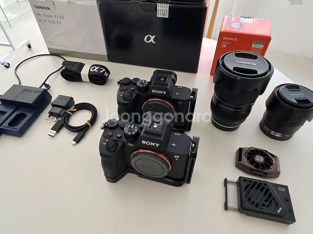 카메라 2대 스몰리그 L브라켓 장착하였고 셔터컷은 9880대 10380대 입니다 a7m4 랑 브라켓 탐론 28-75g2 구매는 280만원 a7m4 랑 브라켓은 200입니다 충전기는 브로나인 충전기이며 5만원입니다. 상태는 카메라 렌즈 풀박스이며 제습기에 보관하며 너무 좋습니다. 전자기기이다보니 직거래 원합니다 장소는 종암동입니다