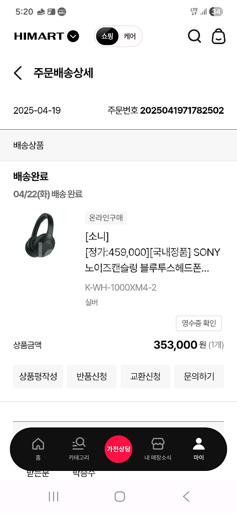 소니 WH-1000XM4 노이즈 캔슬링 블루투스 헤드폰 실버 색상입니다 박스 포함 모든 구성품 그대로 들어있습니다 정가는 459,000원이에요 30시간 연속 재생이 가능하며, 360 Reality Audio를 지원하여 몰입감 있는 사운드를 경험할 수 있습니다 Google Assistant와 Alexa를 지원해 편리하게 사용할 수 있어요 25.4월에 사고 몇번 안썼습니다. 실내에서 10번 내외 사용했습니다.