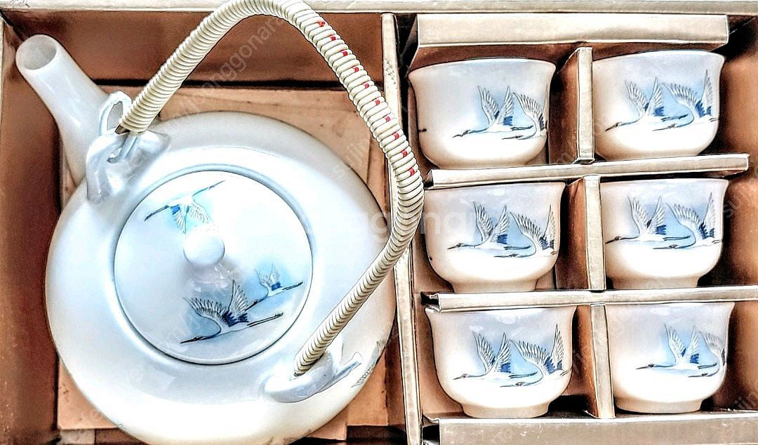 교환반품불가 여러장사진 확인요망 실사용및 소장 수집 하는분 추천해요 제가 모아 오던거 하나둘씩 정리중 입니다. 1988년에 나온 38년된 제품 박스채 있어요. 주전자 1개 잔6개 일괄 합 5만원 에눌× 택배비 5천원 에어캡포장으로 안전하게 보내드려요 0ㅣ0 사삼사삼 6칠이육