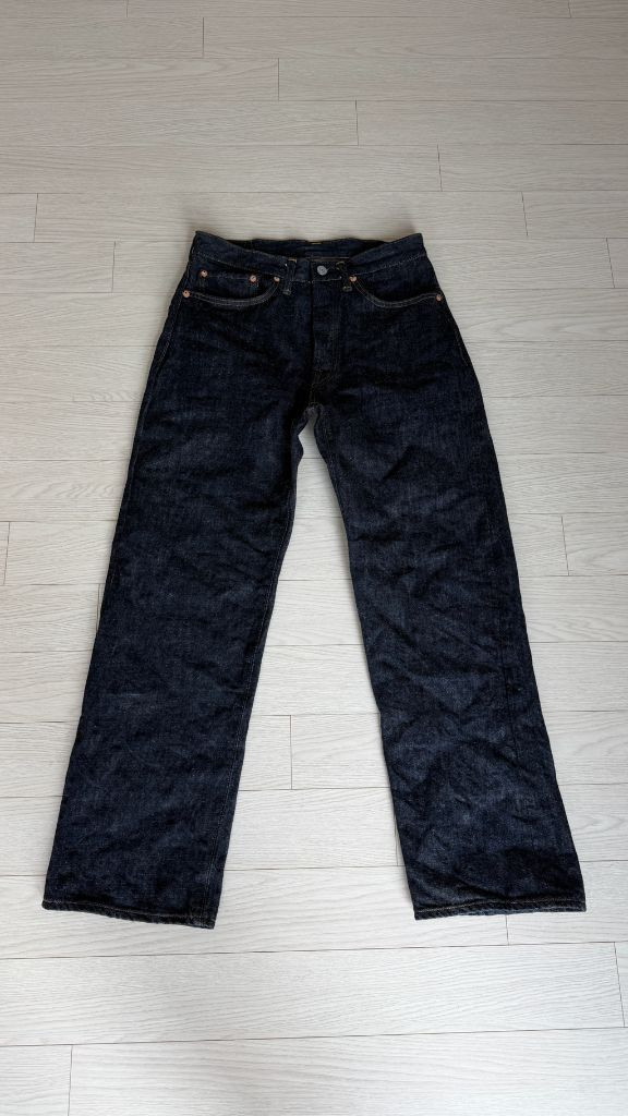 브론슨 Lot 55801xx 1950s 셀비지 데님 진 30 사이즈 1회 냉수 기계세탁 새상품입니다. 받자마자 입어보고 세탁하면 딱 맞겠다 싶어 세탁 후 입어봤으나 허리가 너무 작아 바로 포기하고 매물합니다. 세탁 후 실측 (cm) 허리 37.5 (단면 기준) 인심 72 총장 100.5