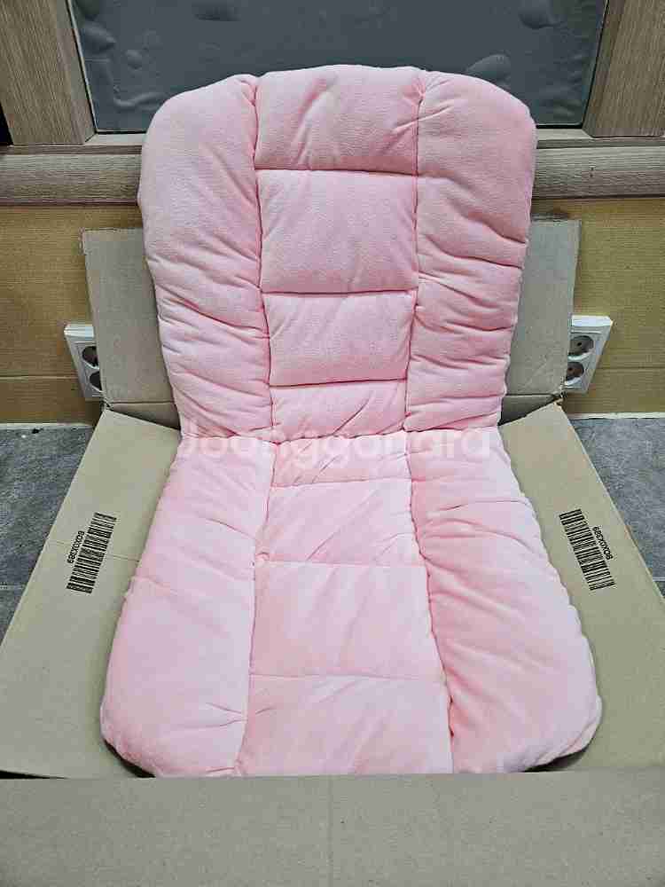 분홍색 바운서 시트입니다 사이즈는 45x48x45cm이고, 폴리에스터 섬유로 만들어졌어요 뒷면에는 미끄럼 방지 처리가 되어있고, 바운서에 고정할 수 있도록 버클이 달려있습니다 #3