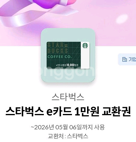 스타벅스에서 사용 가능한 1만원 e카드 2026년 5월6일 까지