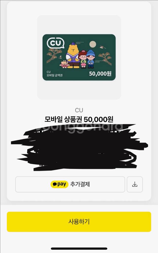 편의점에서 사용 가능한 cu 5만원 모바일 상품권이에요
