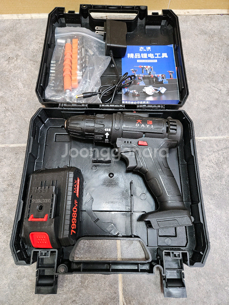 DAYI 전동 드릴 드라이버 세트입니다 케이스, 충전기, 드릴 비트 등 다양한 구성품이 포함되어 있습니다 79980VF MAX 리튬 이온 배터리를 사용하여 강력한 힘을 제공합니다 다양한 드릴링 및 스크류 드라이빙 작업에 적합합니다 #3