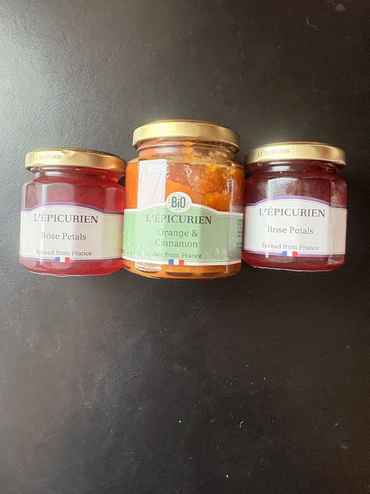 레피큐리앙 잼 125g 로즈 페탈 2개, 210g 오렌지&시나몬 1개 구성입니다 프랑스에서 만들어졌고, 장미향 은은하고 유기농 오렌지를 사용했어요 유통기한은 2026년 7월까지입니다