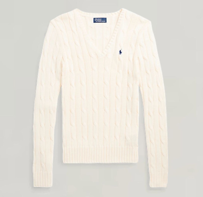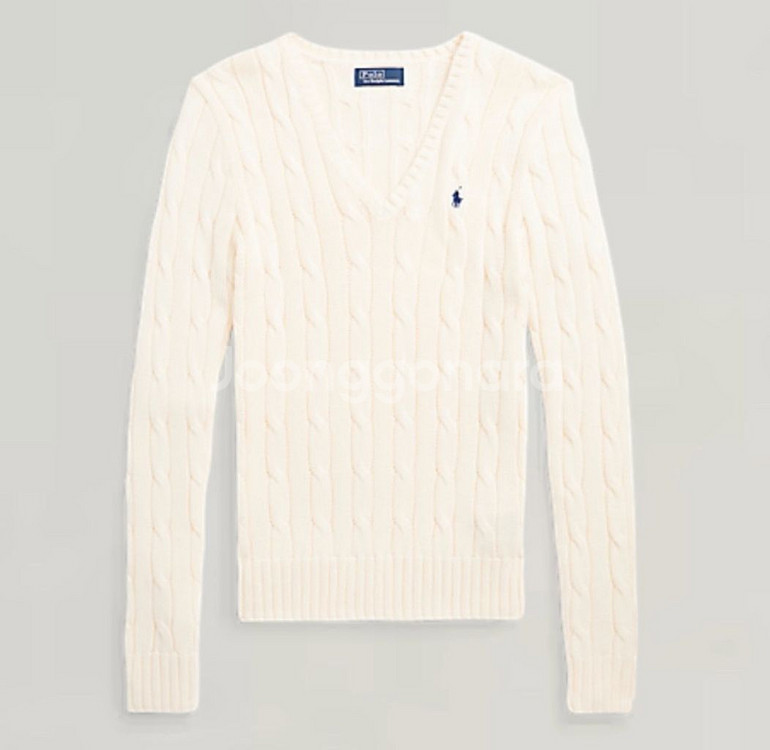 폴로 랄프 로렌 여성 케이블 니트 코튼 브이넥 스웨터