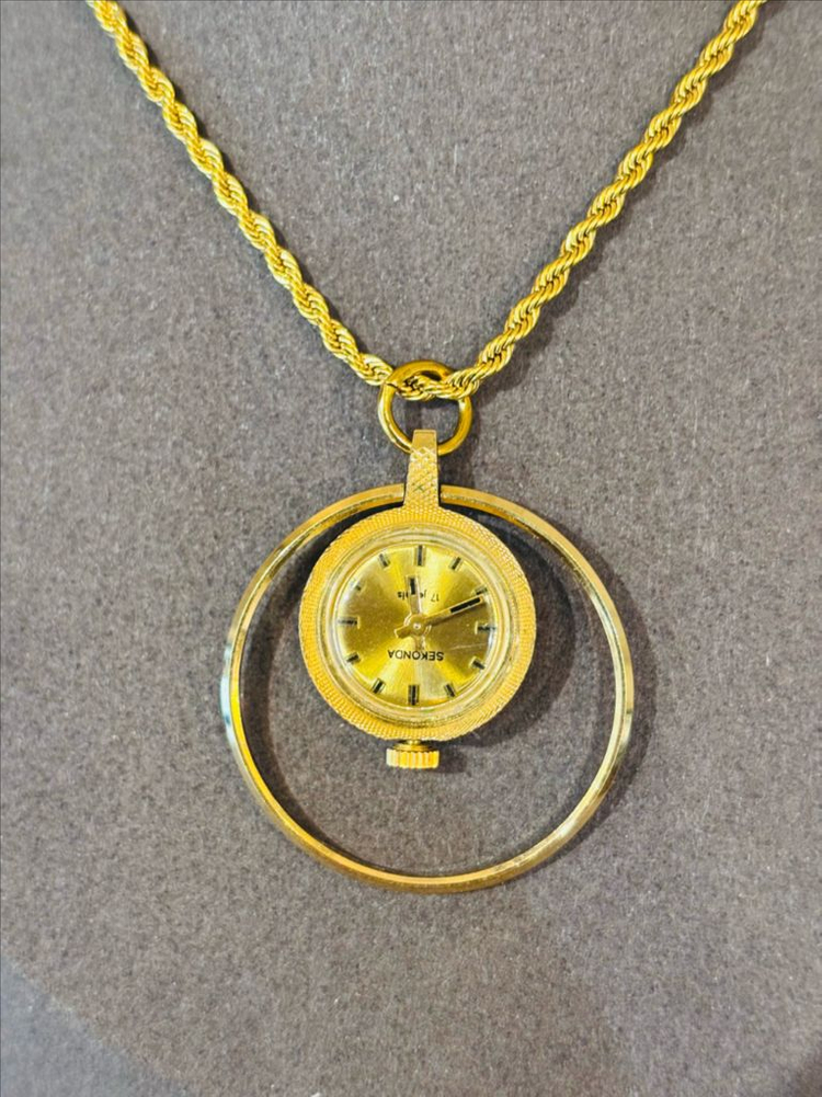 소련 세콘다 Sekonda 빈티지 펜던트 기계식 시계입니다. 세콘다는 1966년 설립된 영국 시계 브랜드로 초창기에는 구소련에서 생산하였다고 합니다. 케이스와 글라스에 약간의 생활기스 외 상태 양호합니다 무보정 사진이므로 상세 사진을 확인바랍니다. 기계식 시계이니 만큼 용두를 감아서 작동하며 빈티지 수동시계 특성상 일오차가 있을 수 있습니다. 오픈하여 + - 속도조절 스위치로 잘 조절하면 크게 오차없이 사용하실수 있습니다. made in ussr Size : 18 mm (용두제외) , 링 32mm Color : 골드 - 모든 시계는 제가 직접 깨끗이 청소하고, 24시간 이상 동작 확인 및 기본적인 정비를 하여 이상이 없는 제품만을 판매합니다. - 빈티지 제품은 특성상 사용감, 스크래치 등이 존재하며 이러한 경우 사진과 함께 최대한 자세히 설명을 하도록 노력하고 있습니다. - 새상품이 아니므로 초기 불량 이외에는 A/S, 교환, 환불이 어려우니 궁금한 점은 문의주시고 구매바랍니다. - 택배 또는 매장 방문하셔서 구입가능합니다 (서울 광진구 광장로75-1, 1층 유로빈티지)