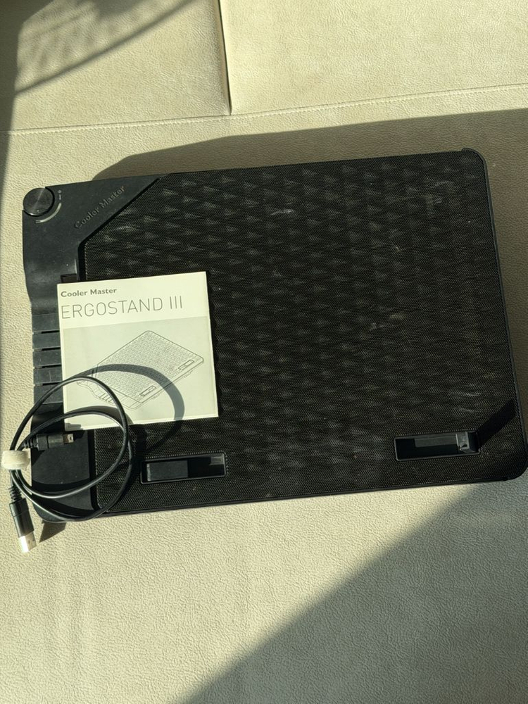쿨러마스터 ERGOSTAND III 노트북 쿨러 거치대입니다 USB로 연결하여 사용하며, 노트북 발열을 효과적으로 잡아줍니다 쿨링팬이 장착되어 있어 장시간 사용에도 노트북의 성능을 유지할 수 있도록 도와줍니다 분리하여 세척해둔 상태입니다