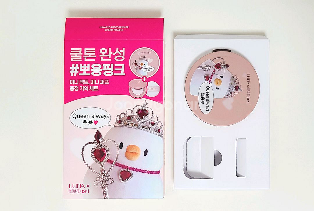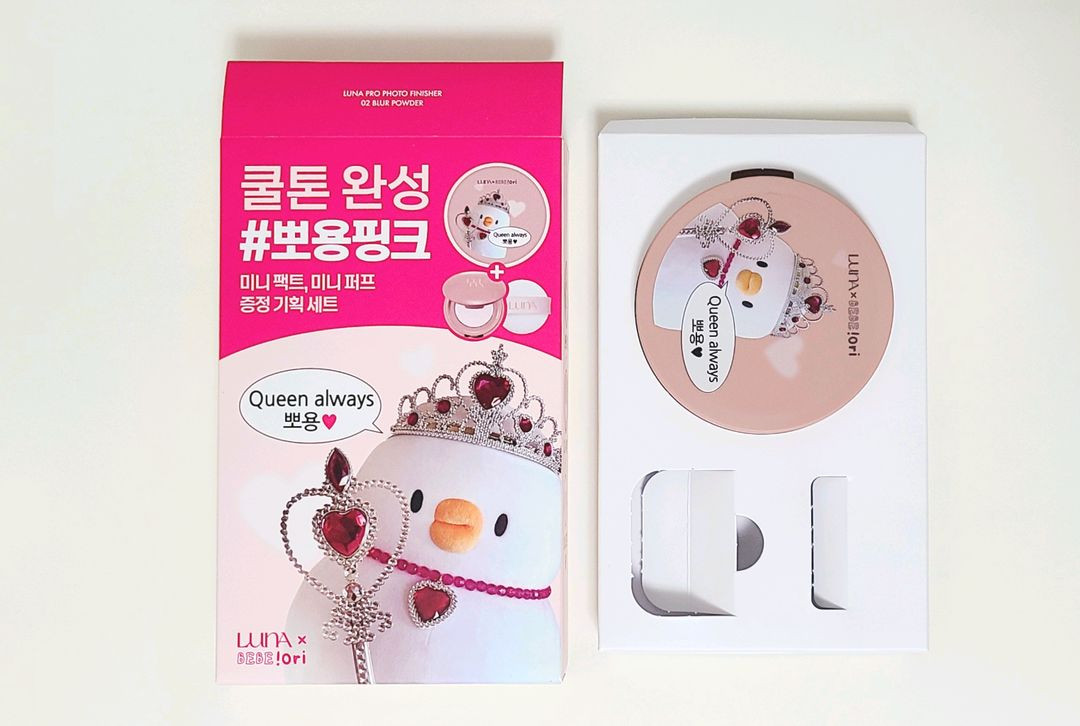 [톤보정파우더] 루나 프로 포토 피니셔 02호 블러 파우더 팩트 (핑크색상) 올영 베베더오리 콜라보 기획 제품 입니다. 미니+미니 퍼프는 제외하고 본품만 포함된 사진 속 구성 그대로 갑니다. 본품인 팩트는 미개봉 새상품이고 유통기한은 2028.08.28까지 입니다.
