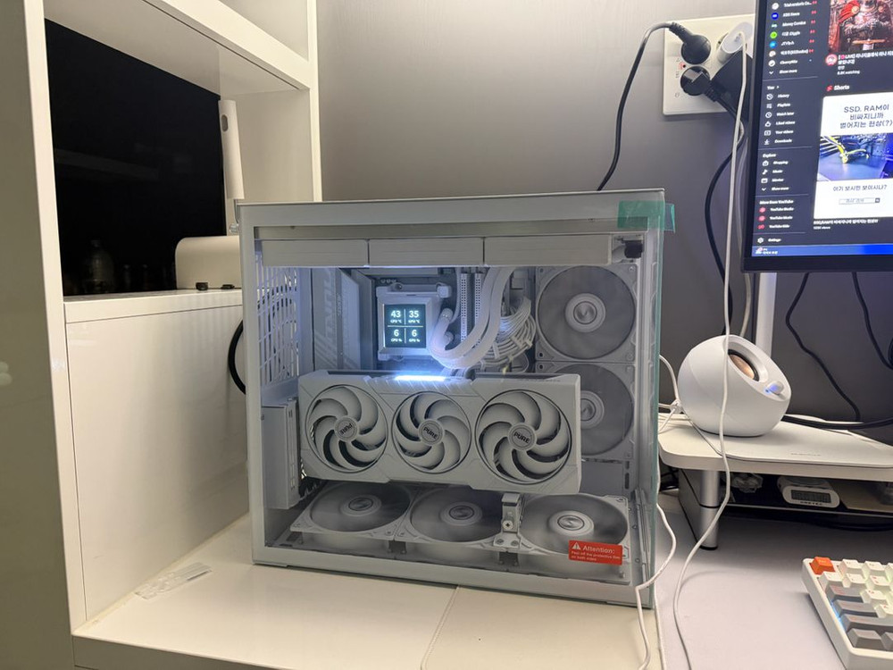 1월 말 조립, 케이스 유리 비닐 미제거, 새상품급 cpu : 9800x3d 쿨러 : 리안리 하이드로시프트 360s 메인보드 : b850 어로스엘리트 아이스 wifi7 램 : 팀그룹 ddr5 6000 cl30 32gb expo, 오버가능 ssd : 하이닉스 p41 1tb 그래픽카드 : 사파이어 9070xt 퓨어 oc 화이트 16gb 케이스 : 리안리 미니 v2 flow 화이트 라이저킷 : tryx string pcie 5.0 케이블 파워 : 슈퍼플라워 850w 골드 윈도우 11 home 인증상태 합정역, 이대역, 신촌역 직거래 가능