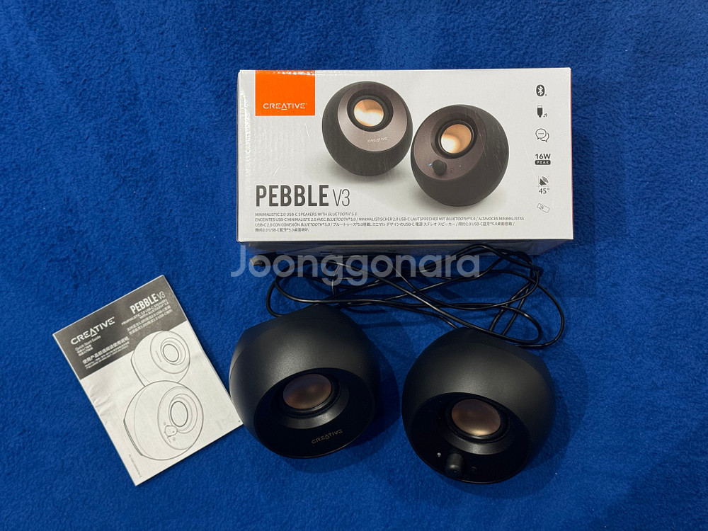 ✔ 모델 : Creative PEBBLE V3 ✔ 구성 : 스피커 좌/우 + 박스 + 설명서 (구성품 일체) ✔ 상태 : 실사용 거의 없이 보관, 유닛/외관/케이블 모두 깔끔 ✔ 구매경로 : 해외 직구 ✔ 블루투스 / 유선 정상 사용 가능 모델 데스크탑용으로 구매했으나 사용 빈도가 거의 없어 정리합니다. 사진 보시는 것처럼 외관 상태 좋고, 유닛 찌그러짐이나 큰 사용감 없습니다. 전체적으로 깔끔한 컨디션 유지 중입니다. 사진은 실물 기준이며, 추가 사진 필요하시면 요청 주세요.
