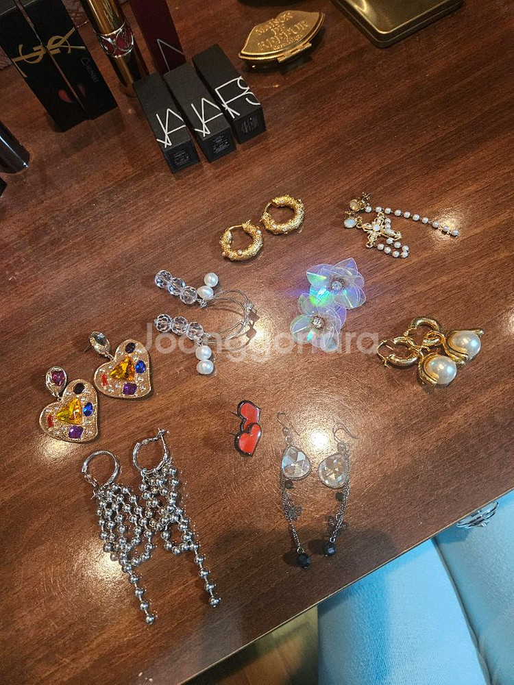 9개 귀걸이 세트로 판매합니다. 화려한 스타일부터 심플한 스타일까지 다양하게 준비되어 있습니다. 전부 착용 횟수 적은 제품들이라 상태 좋습니다. 별도 문의 없으시면 바로 안전결제 부탁드려요! 첫번째꺼만 위에 보석빠졌어요~ 서비스라고 생각해주세요. 볼드한 귀걸이들입니다. 특이한거 좋아하시는분들 데려가세요 9종 전부 4000원 거의 4-500원꼴이네요 ㅎ