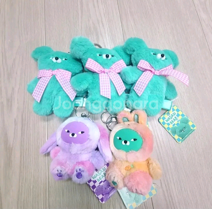 인형뽑기로 뽑은 키링인형들 판매합니다. 와사비베어 하이브리드 키링인형 개당 4천원 일괄하시면 15,000원!! 뽑아서 보관만 하고있는 택 달려있는 새상품인데, 뽑기인형 특성상 사진 잘보시구 예민하지 않으신 분들만 연락주세요. 판매후 교환❌️ 반품❌️ 문의 있으시면 편하게 연락주세요!!