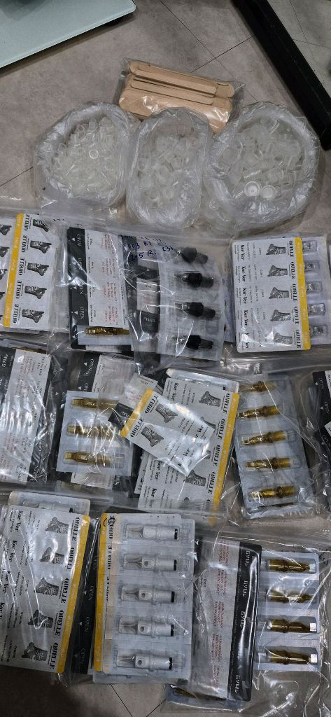 @타 사이트에서 판매 안 합니다@ 카트리지바늘 241개 + 잉크컵 SㆍMㆍL + 우드스틱 일괄 택배비 포함 21 만원 (낱개구매 불가) 용인 직거래 가능, 택배시 우체국택배로 보내드려요 () 표시 안되어있는 제품은 전부 결 카트리지 입니다 ㆍ0803RL- 30개 ㆍ1001RL-5개 (매드코어) ㆍ1003RL -5개 ㆍ1205RL -3개 ㆍ1007RL-20개 ( 퀠르) ㆍ1209RL -12개 ㆍ1207RS - 15개(퀠르) ㆍ1205Rs -5개 ㆍ1209RS - 9개 (결), 20개 (퀠르) ㆍ1211RS -10 ㆍ1209M1-4개 ㆍ1215M1-29개 ㆍ1223M1-16 (퀠르 ) ㆍ1207RM-18개 (켈르),2개(결) ㆍ1211RM - 15개 ㆍ1215RM -23개