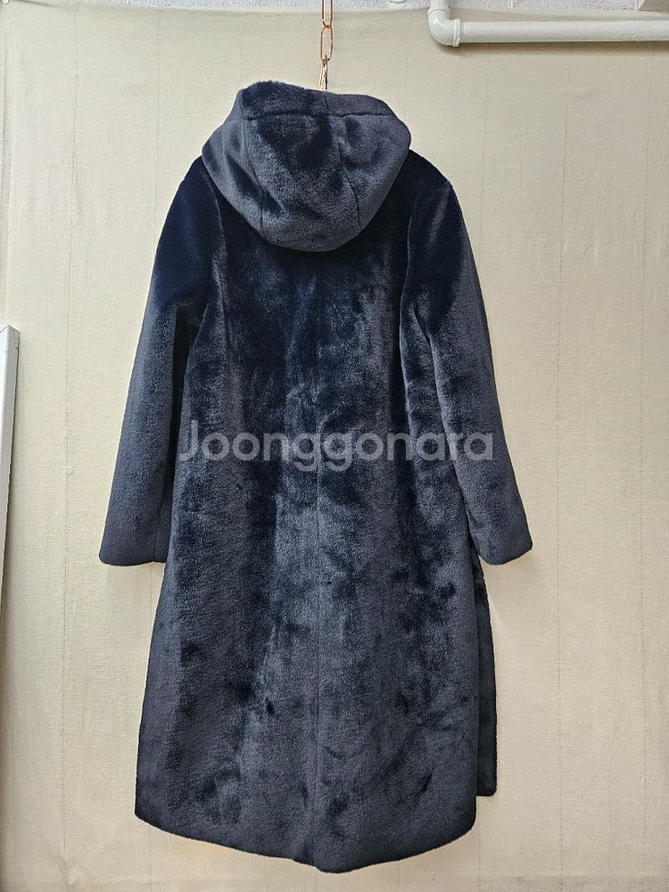 PAT 에코밍크퍼 후드 코트입니다 색상은 네이비이고, 사이즈는 100입니다 재질은 폴리에스터 100%입니다 부드러운 터치감과 뛰어난 보온성을 자랑합니다 반짝이는 퍼윤기좋고 분위기좋아요 새옷수준으로 상태좋아요 사이즈 100 77 가슴단면 55 길이 107